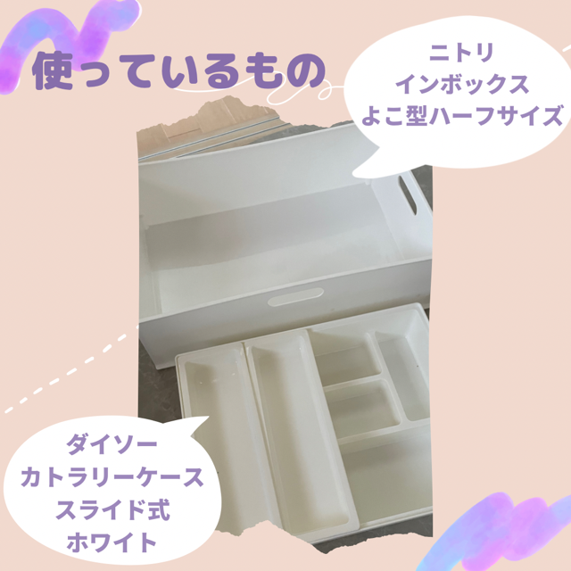 ニトリのインボックスの中はキッチンカトラリー収納グッズを使って